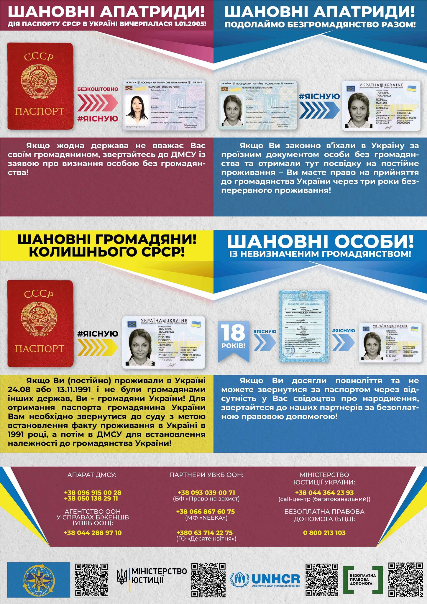 Постер УВКБ ООН із номерами телефонів партнерів з надання правової допомоги